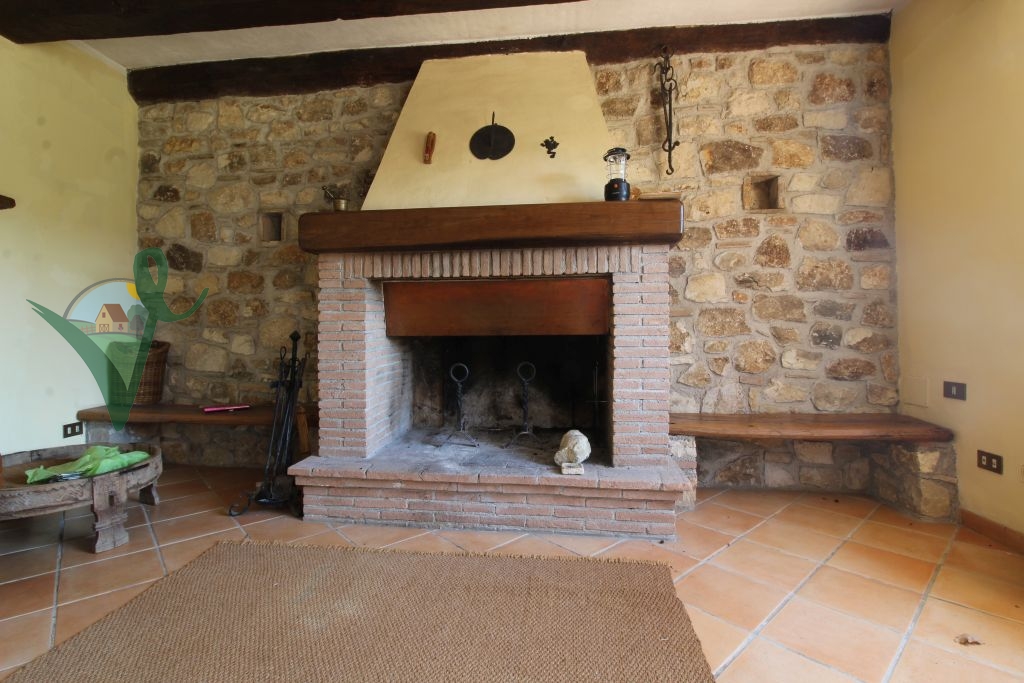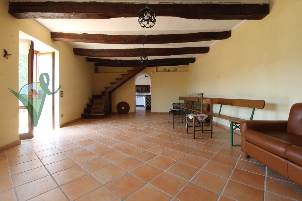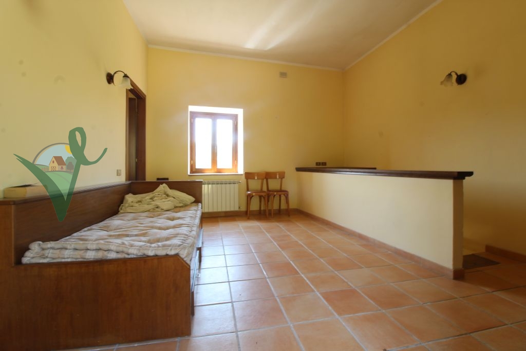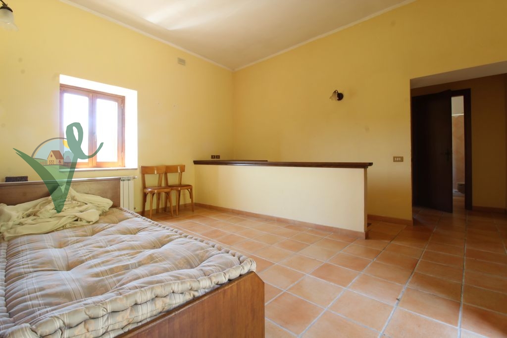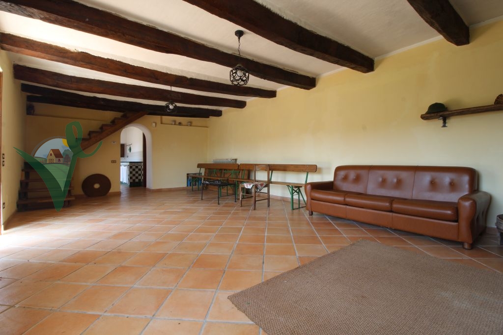 Sviluppato su 2 livelli, il casale è composto da: salone con camino e travi in legno a vista, cucina abitabile in muratura, bagno con doccia e grande intercapedine di 60 mq utilizzata come ripostiglio al piano seminterrato; terrazzo con forno a legna, ingresso, 3 camere da letto matrimoniali, disimpegno e bagno con doccia al piano terra.