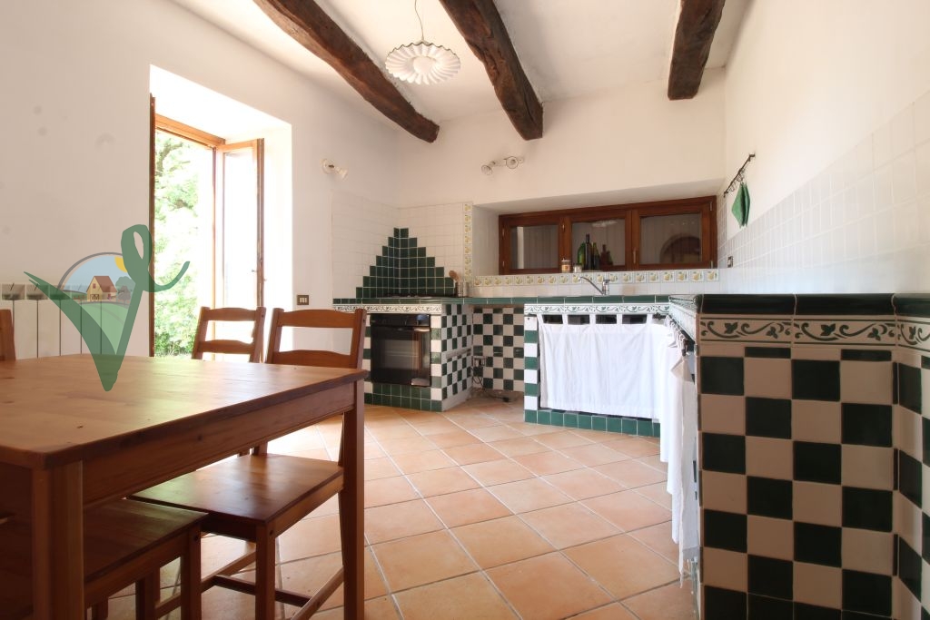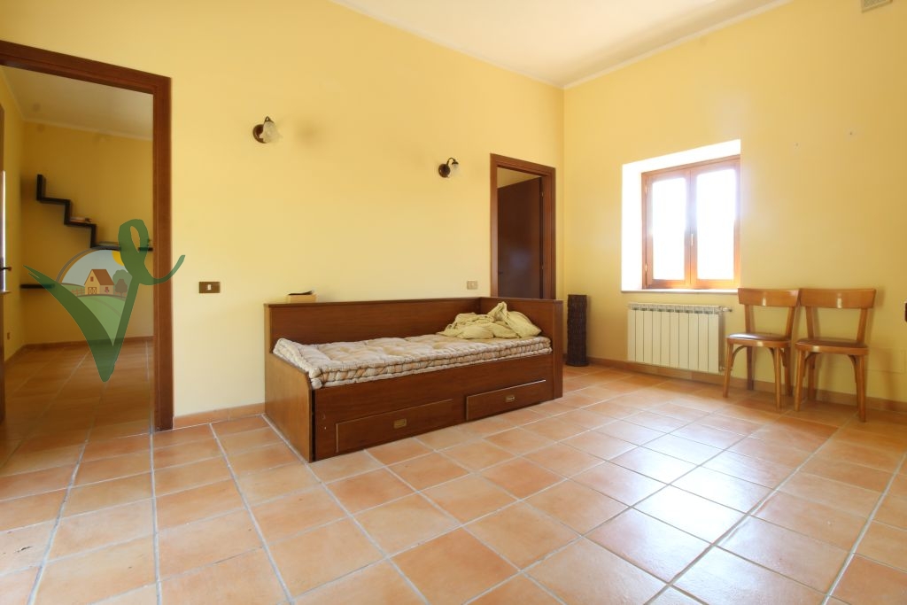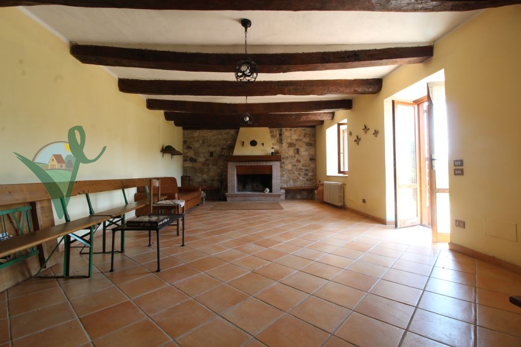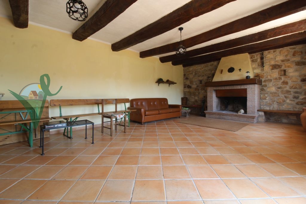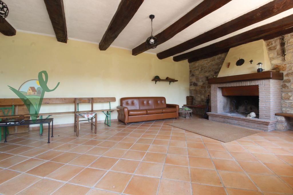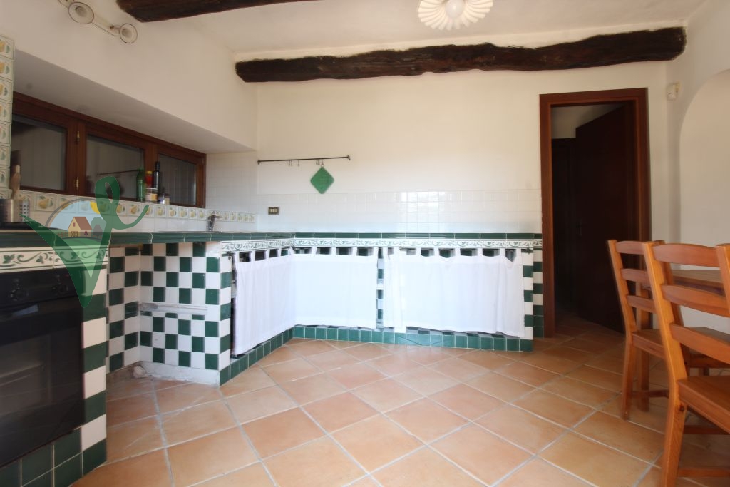 Sviluppato su 2 livelli, il casale è composto da: salone con camino e travi in legno a vista, cucina abitabile in muratura, bagno con doccia e grande intercapedine di 60 mq utilizzata come ripostiglio al piano seminterrato; terrazzo con forno a legna, ingresso, 3 camere da letto matrimoniali, disimpegno e bagno con doccia al piano terra.