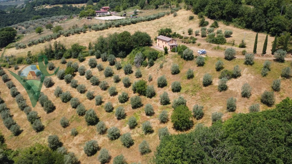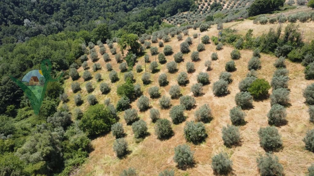 Completa la proprietà un terreno privato di 45.580 mq, prevalentemente recintato, parte a prato, parte incolto, parte uliveto con 300 piante di ulivo in produzione e parte frutteto con qualche ciliegio, melo e noci.