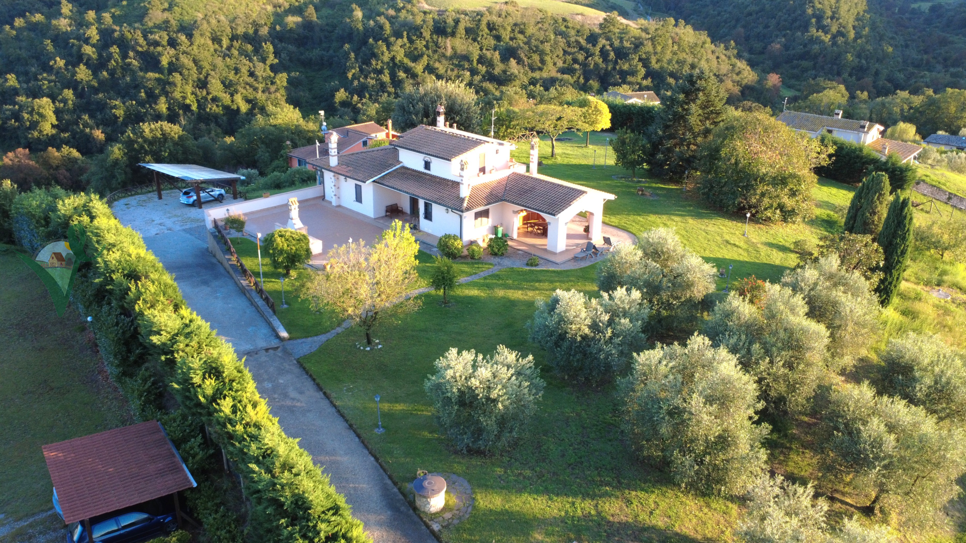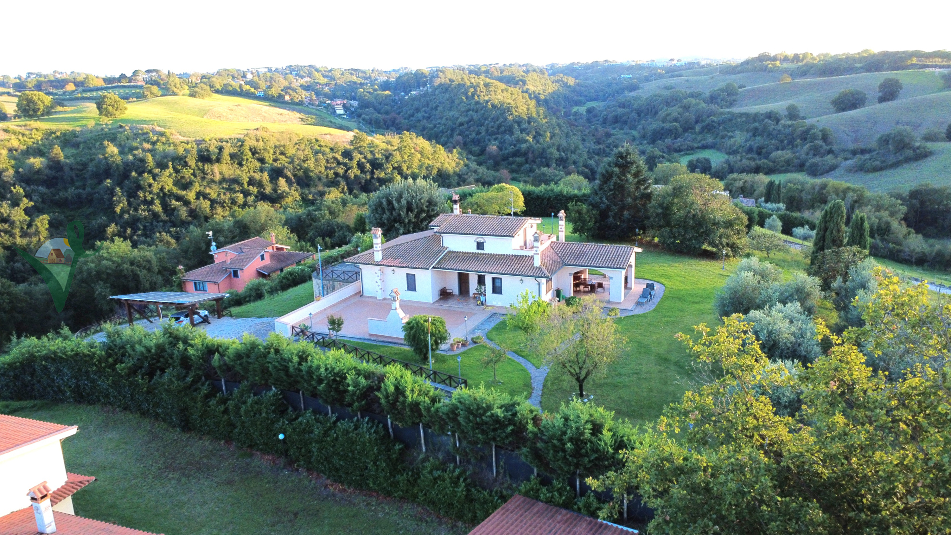Spazi esterni: La villa è circondata da un terreno di 10.000 mq interamente recintato, suddiviso in: